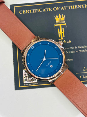Tomi Brown Strapped Ocean Dial Elegance Watch