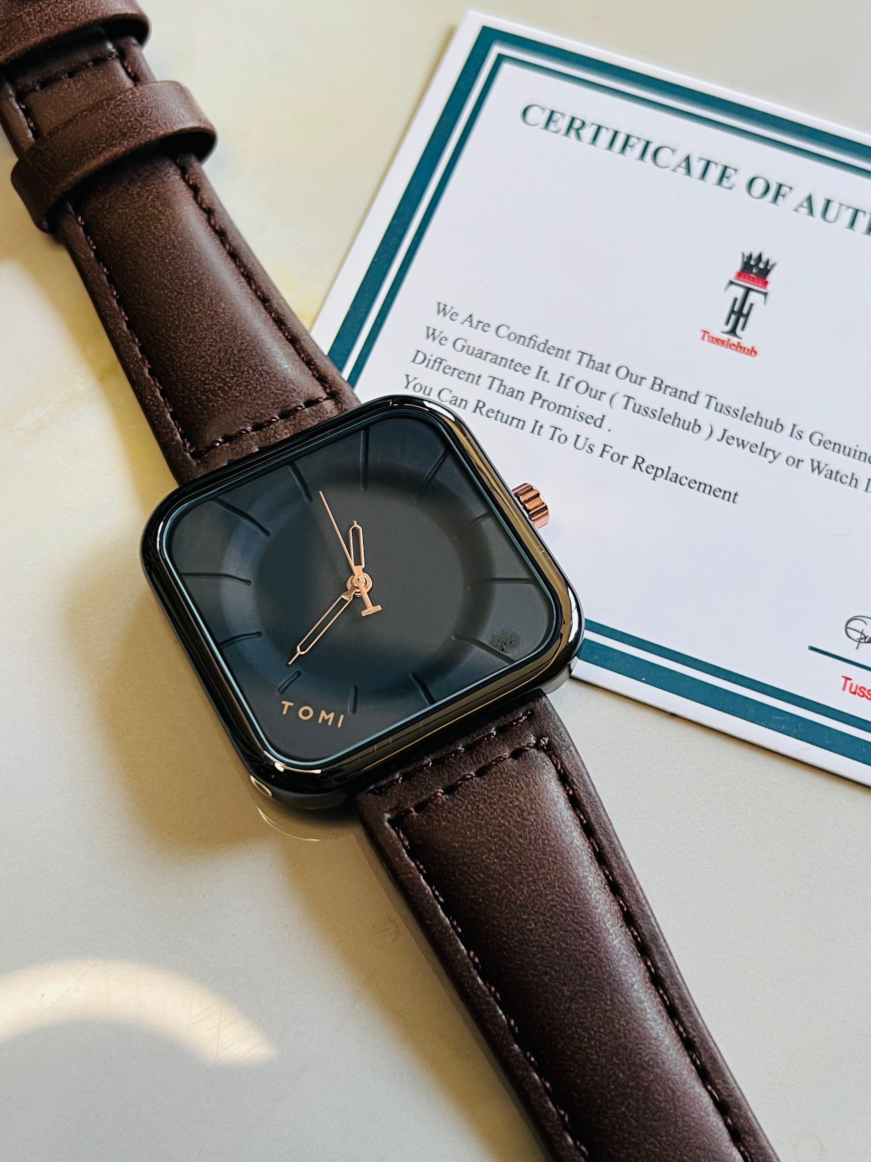 Tomi Coffee Black Square Dial Watch